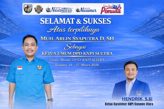 “Kami mengucapkan selamat dan sukses kepada Saudara Muh. Arlin Syaputra D, SH atas amanah besar sebagai Ketua Umum KNPI Sulawesi Tenggara. Ini menjadi titik awal harapan baru bagi kebangkitan pemuda di daerah,” ujar Hendrik.