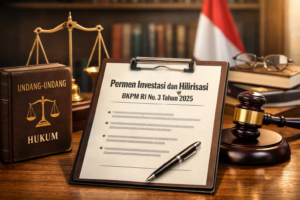 Ilustrasi dasar hukum kemitraan investasi yang mengacu pada Permen Investasi dan Hilirisasi/BKPM RI No. 3 Tahun 2025 sebagai bagian dari sistem perizinan berusaha nasional.